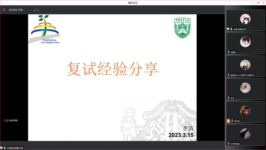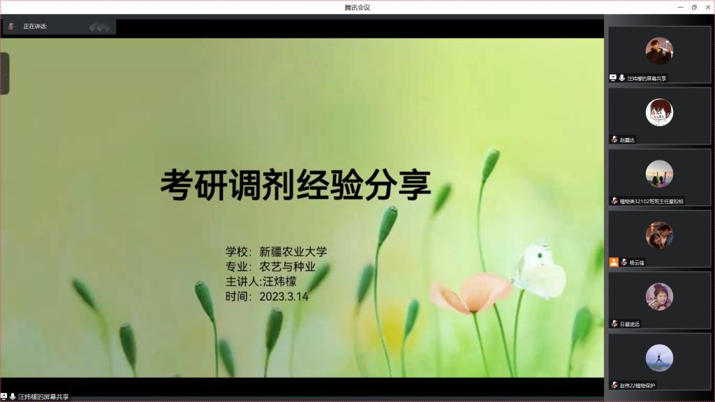 随后,一志愿录取中国农业大学的22级毕业生李清、公司22级研究生赵伟以及调剂到新疆农业大学的22级毕业生汪炜檬,分别以自己的真切经历从复试的准备工作、复试资料、复试中可能出现的问题及调剂需做的准备向同学们进行深刻详实的讲解,帮助同学们对复试及调剂有了进一步的了解。