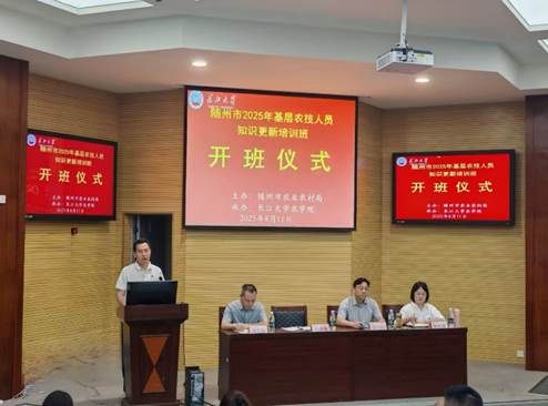 8月11日培训开班,随州市农业农村局副局长陈训刚、农技推广中心副主任鲍凤霞、tyc122ccVIP农公司党委书记周锦华、副经理唐生标等出席开班仪式。